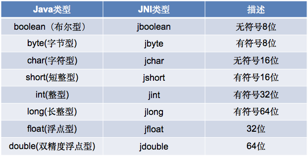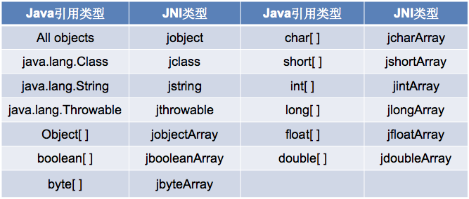 除了Class、String、Throwable和基本数据类型的数组外,其余所有Java对象的数据类型在JNI中都用jobject表示。Java中的String也是引用类型,但是由于使用频率较高,所以在JNI中单独创建了一个jstring类型。