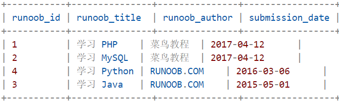 SELECT * from runoob_tbl ORDER BY submission_date ASC; ---按时间升序排列