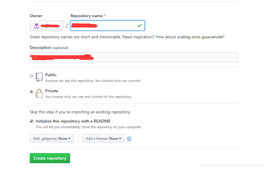 1、首先在git上创建一个仓库,如下图所示: