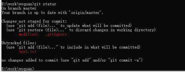 12、在目录中添加一个test.txt文件,使用git status查看状态,如下图所示: