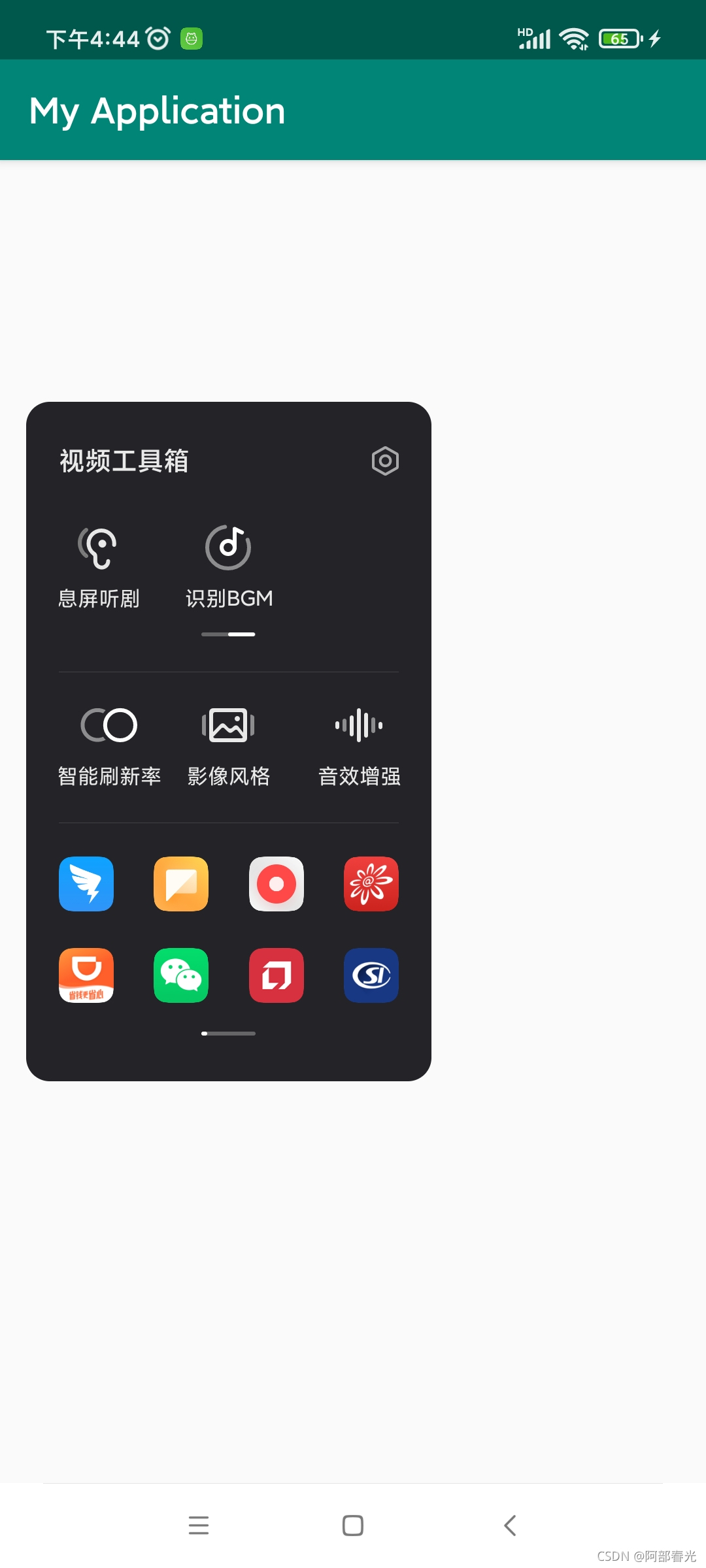 3.点击进入demo app,此时手机左上角弹出“视频工具箱”悬浮面板,点击“息屏听剧”功能。查看生命周期流程,此时生命周期相关Log均不打印,也就是说当前Activity的生命周期并未变化。再解锁,相关Log依旧未打印。