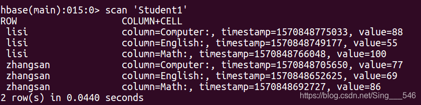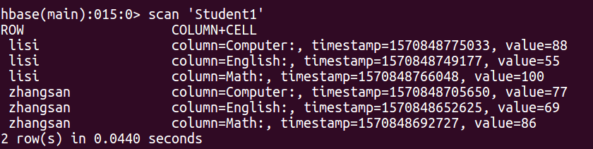 1.根据上面给出的表格,用Hbase Shell模式设计student学生表格。设计完后,用scan指令浏览表的相关信息,给出截图。
