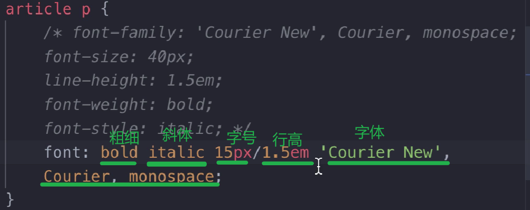 需要注意的是,简写之后的顺序是不能变的,第一个是字重,第二个是样式,第三个是大小,最后是字体类型