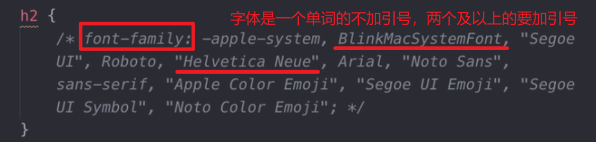 如果字体是两个及以上的英文字母,那么在使用字体的时候,要加引号。