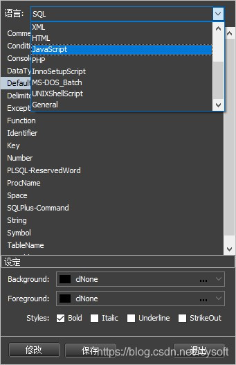 代码语法高亮设置 在菜单的选项内 选择语言样式即可