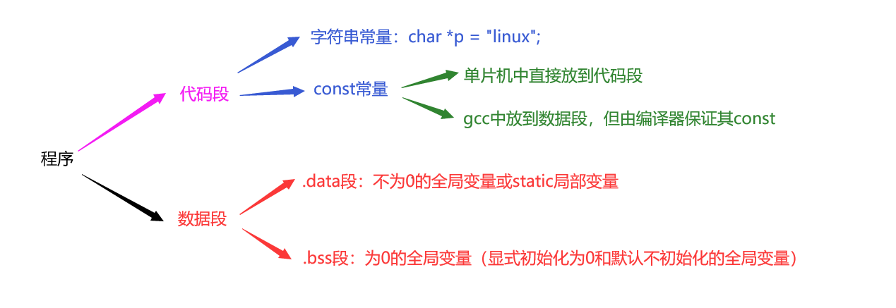 bss段存:显式初始化为0或者未显式初始化的全局变量,显式初始化为0或未显式初始化的static局部变量。