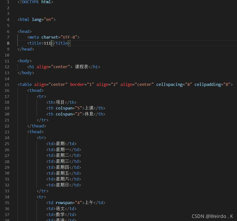 表头单元格标签<th></th>(包裹在tr中),文字会加粗居中显示