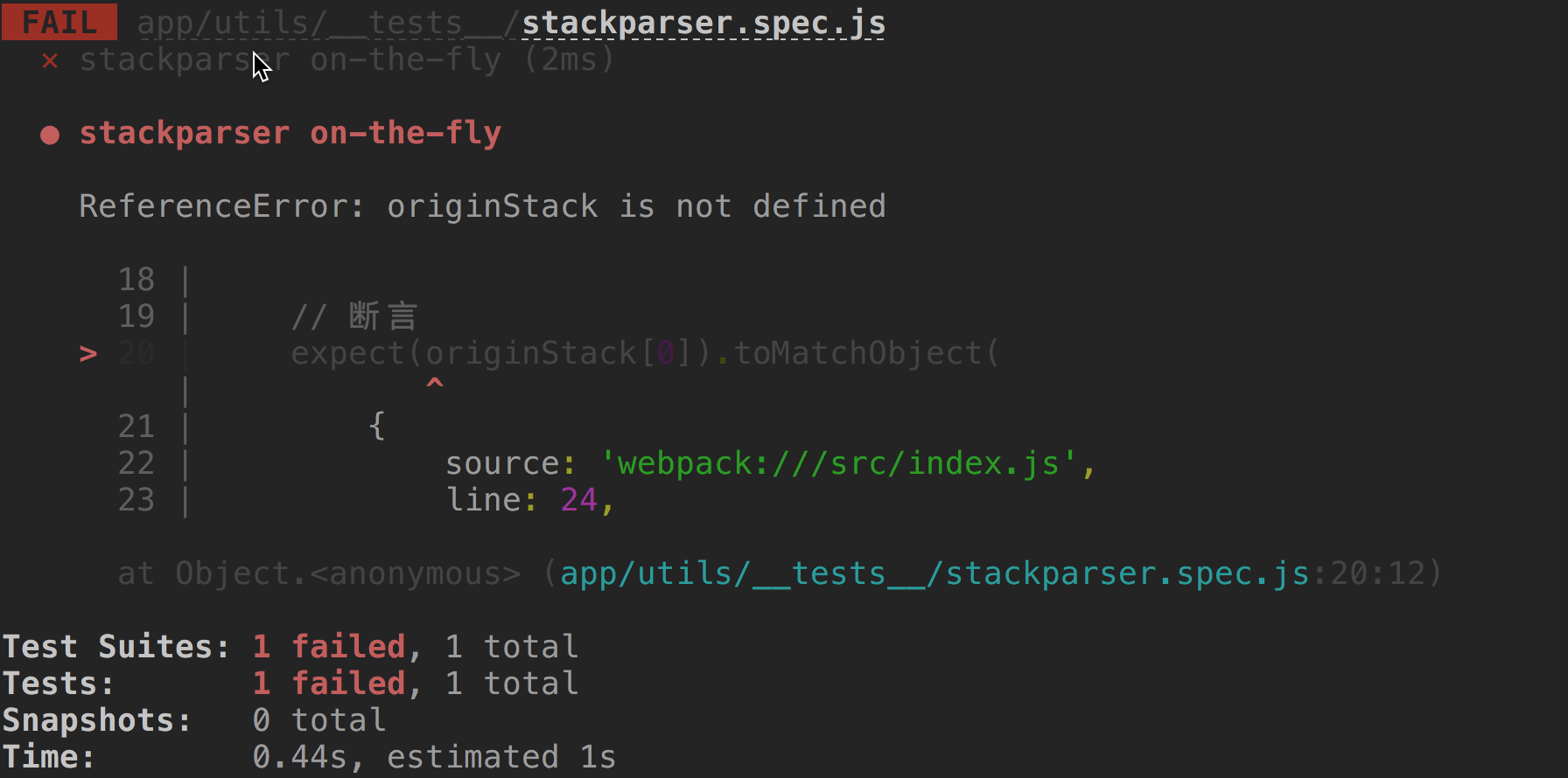 复制代码在同级目录下创建测试文件stackparser.spec.js