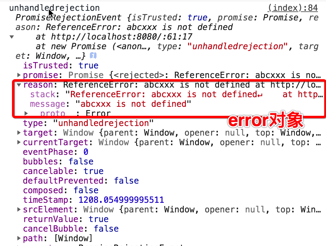 实际上我们可以将unhandledrejection事件抛出的异常再次抛出就可以统一通过error事件进行处理了。