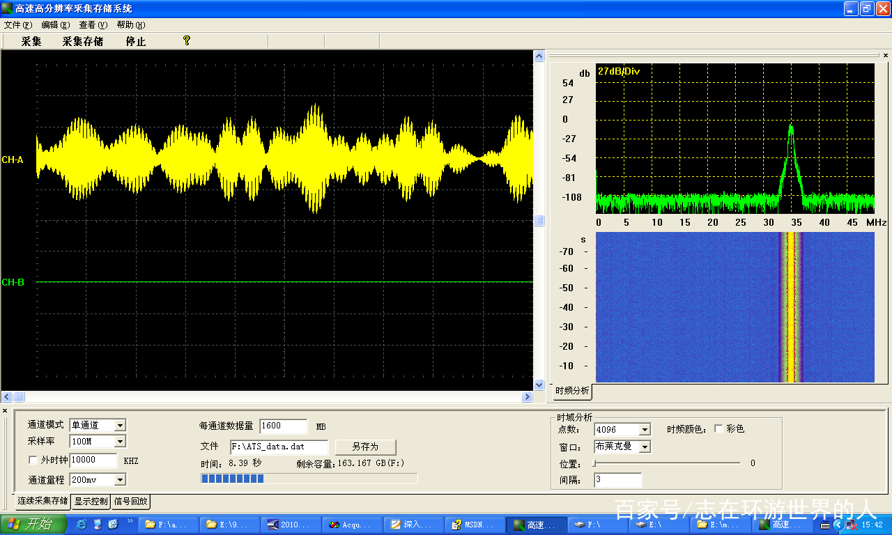 软件实现信号采集处理分析系统参数的设置,数学运算,信号时域显示、参数显示、频域显示、时频分析、信号累加平均及各种现代信号处理算法、并将实时采集的数据高速存储到磁盘阵列中;数据可通过高速PCI-E×16总线传入高性能GPU并行处理器进行实时处理;软件实现了数据采集、存储、分析与管理功能。