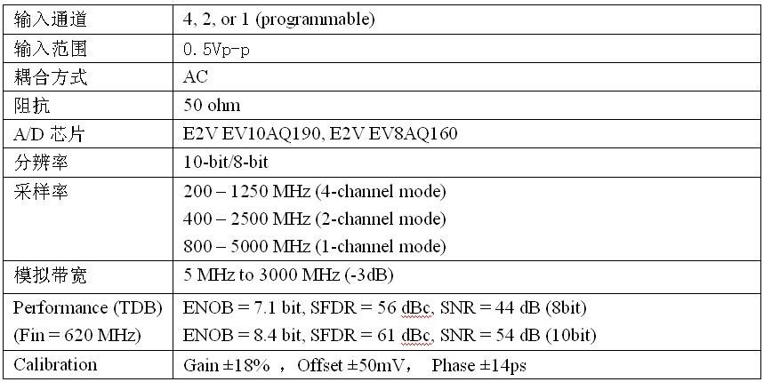 规 格:8bit 1GS/s 高速数据采集卡 及专用高性能磁盘阵列服务器系统