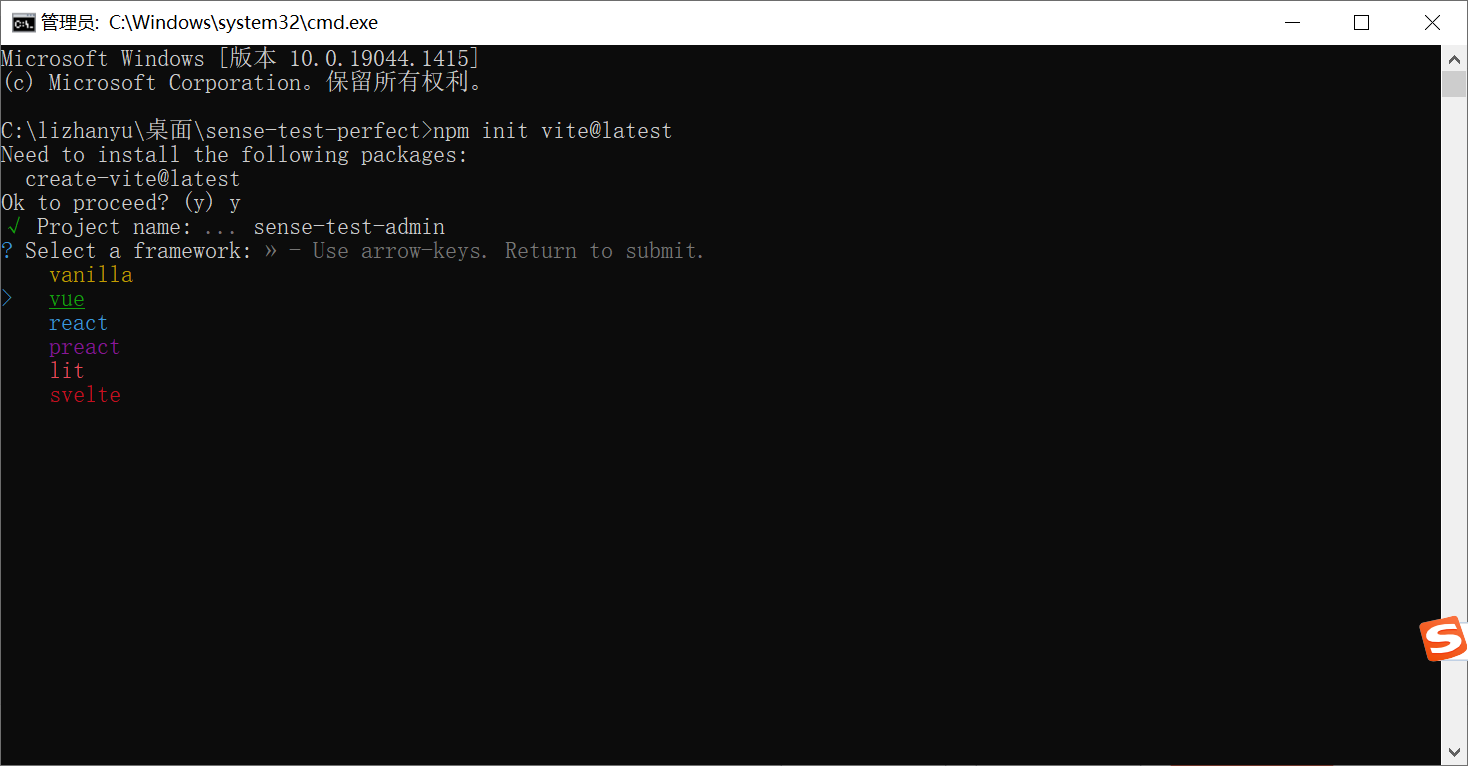 指定我们项目的名称,这里我的项目名称是sense-test-admin