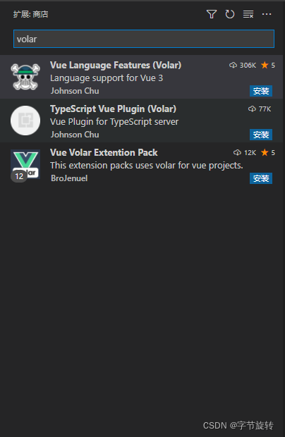 以上错误主要是因为,在vue3项目ts写法报错组件没有默认导出,Vetur不支持vue3版本,需要下载Vue Language Features (Volar),安装后报错问题得到解决(记得要重启vscode)