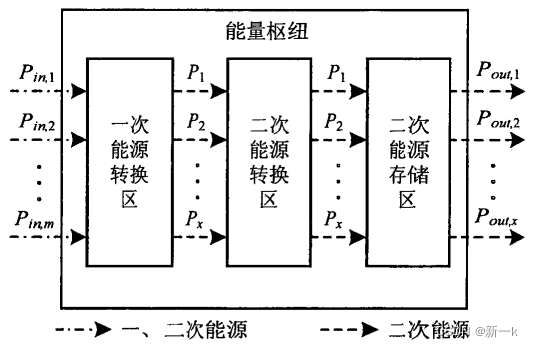 从设备能源输出角度来看,一次能源转换设备和二次能源转换设备都只能输出二次能源。因此,在能量枢纽通常的运行情况下,一次能源之间不考虑能源耦合关系,一次能源只考虑向二次能源转换,二次能源间可能存在能源耦合关系。