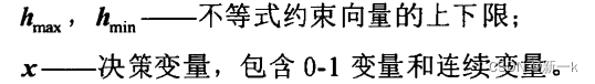 本文提出的区域综合能源系统规划模型的决策变量有:各能量枢纽矩阵Y x Y_xYx中的0-1变量y i j x y_{ij}^{x}yijx、待建i ii型管线j jj建设与否的0-1变量y i j k y_{ij}^{k}yijk、个能量枢纽设备单元输入/输出连续变量p i j x , k , i n ( t ) p_{ij}^{x,k,in}(t)pijx,k,in(t)和p i j x , k , o u t ( t ) p_{ij}^{x,k,out}(t)pijx,k,out(t)、i ii型管线j jj的功率连续变量P k , i j ( t ) P_{k,ij}(t)Pk,ij(t)、i ii型管线j jj的功率损耗连续变量P k , i j l o s s ( t ) P_{k,ij}^{loss}(t)Pk,ijloss(t)、k kk形式能源购入连续变量P k , b G ( t ) P_{k,b}^{G}(t)Pk,bG(t)。