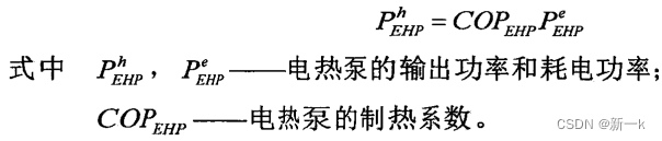 电热泵是一种能将空气、水或土壤中低位热源转移到高位热源的装置,主要是用于供暖,其典型数学模型为:
