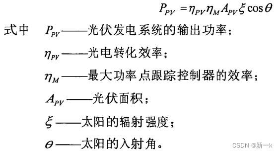 光伏发电系统利用半导体的光生伏特效应将太阳能直接转换为电能,光电转换效率在13%-18%之间。其发电功率与光照强度的关系为: