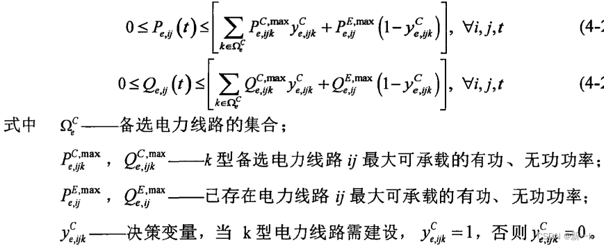 对于待扩建或新建的配电、气、热网,两个节点间最多只新建一条某种型号的管线,约束条件如下: