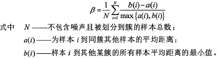 为了更好地判断场景聚类结果的合理性,可以采用下式的轮廓系数对其进行评价。具体地,当β \betaβ越接近于1,则说明该聚类结合越合理;若β \betaβ取值越接近-1,则说明该聚类结合越不合理。