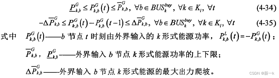 区域综合能源系统从上级功能网络或能源点获得电能和天然气,需受到处理上下限约束和出力爬坡约束,分别如下: