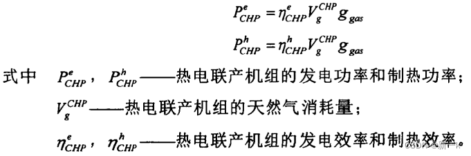 燃气型热电联产机组存在单循环和联合循环两种运行方式,本质上都是将天然气转换为电能和热能,该转换关系可表示为: