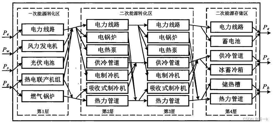 为了降低多能量枢纽系统规划工作量、解决枚举物理架构规划法适用性差的问题,部分研究采用设备分层排布的理念对综合能源系统进行规划。