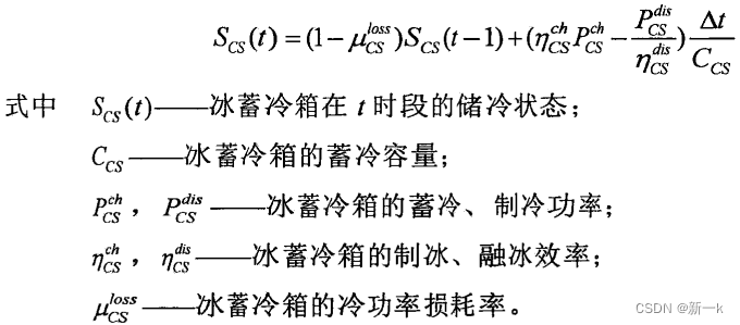 冰蓄冷技术是利用制冷效应对比热容较高的水进行制冷,使其温度降低至结冰状态,利用冰的相变潜热进行冷量的储存,其典型数学模型为: