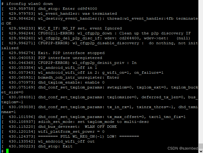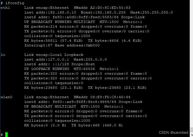 在测试当前网络时,需要把其他连接的网络关闭。在上述ifconfig指令中,可以看到除了eth0网络已经开启,wlan0网络也开启了,可以使用ifconfig命令关闭wlan0网络。