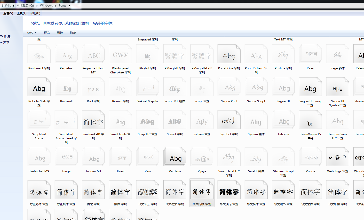 首先我们可以在C:\Windows\Fonts目录下找到我们已经安装的所有字体