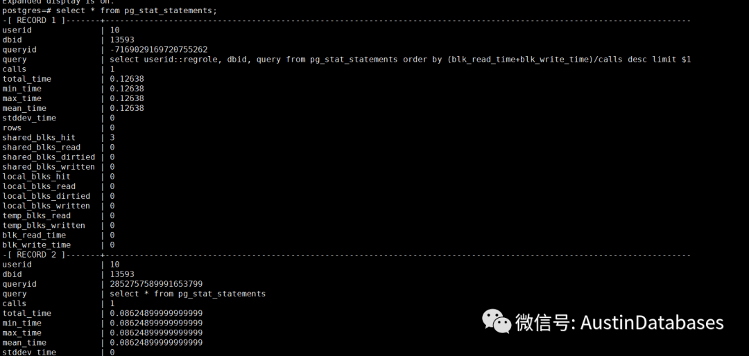 这是一个必要安装的postgresql 的 extension的插件, 通过这个插件可以访问postgresql 最近访问数据库的语句的统计信息,通过这个信息可以插件来收集和统计. 在POSTGRESQL 中PostgreSQL 的核心插件之一.