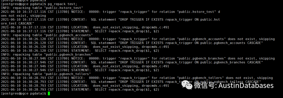 pg_repack的命令主要在外部运行, 其中可以对整个POSTGRESQL 的数据库进行操作,也可以针对单独的表进行操作.