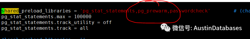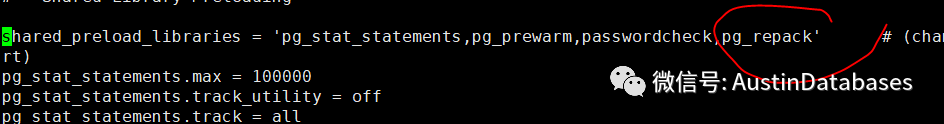 要使用这个插件需要在 share_preload_libraries = 'pg_stat_statements' 添加内容