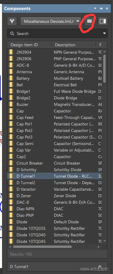 然后点击我鼠标在的这个键, 这个英文是部件的意思,应该就是元器件。
