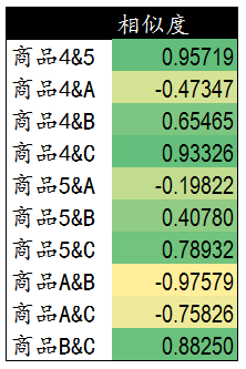 以下是通过计算获得的新商品与已有商品间的相似度数据。