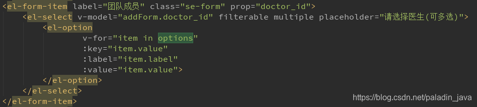 - 问题: 在项目中使用的是 element ui 组件库,在使用select多选下拉框时,编辑页面不知道怎么为其赋值回显数据
