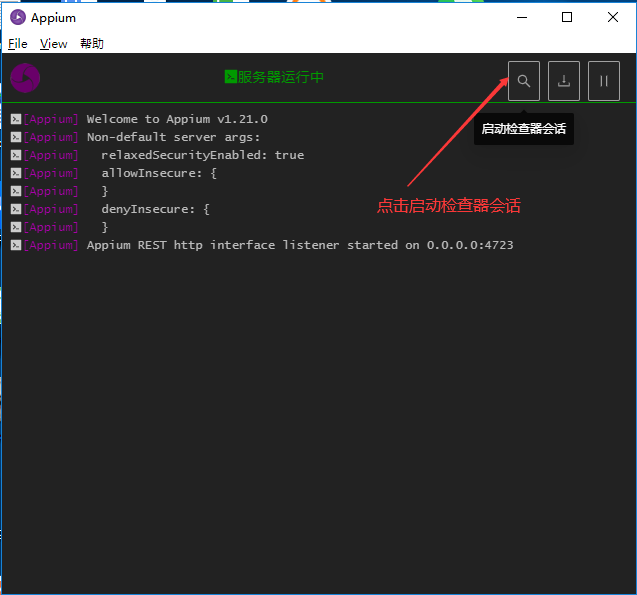 使用时,打开appium-desktop,点击启动服务器。