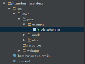 </build>2.创建AlexaHandler.java,在类中创建handleRequest方法,用于接收Alexa发送的设备控制指令