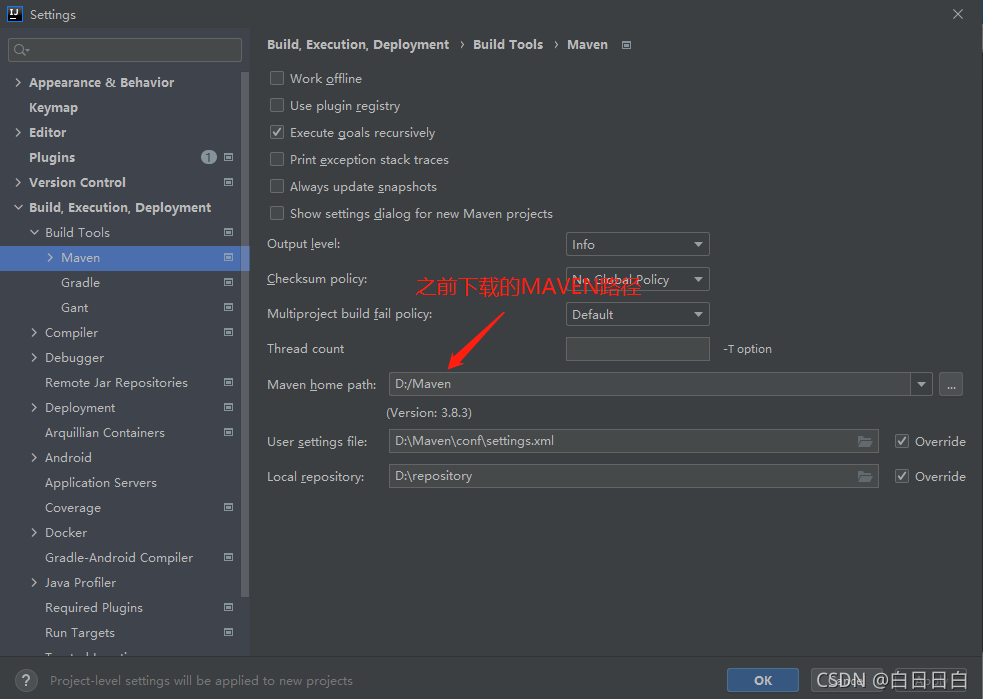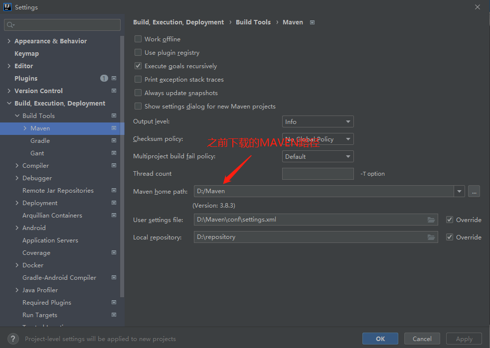<localRepository>D:\repository</localRepository>4.更改仓库地址为阿里云地址