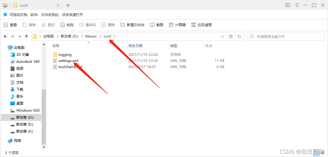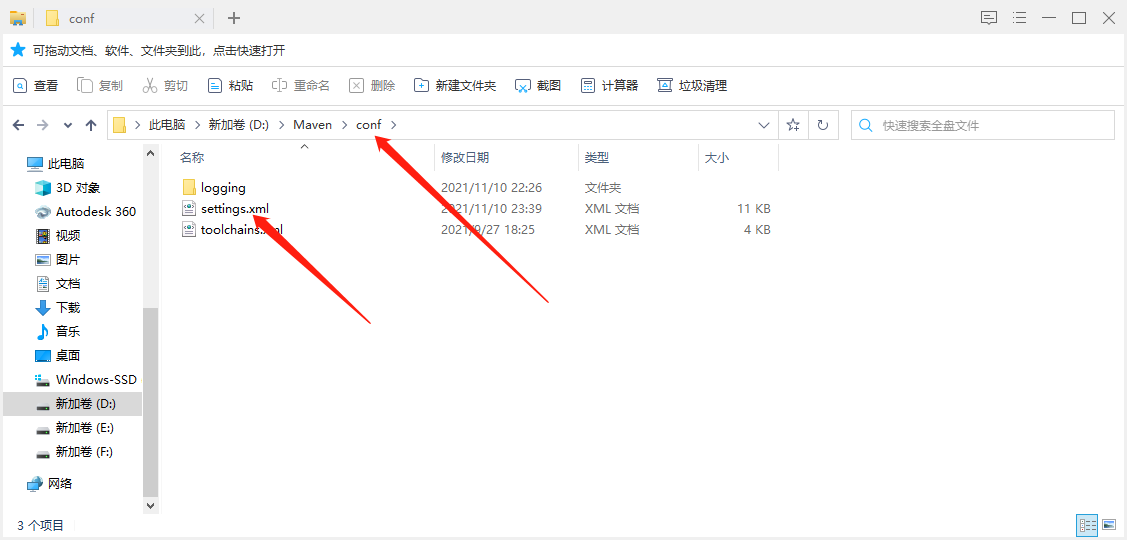 1.在刚刚安装路径找到conf下的settings.xml文件