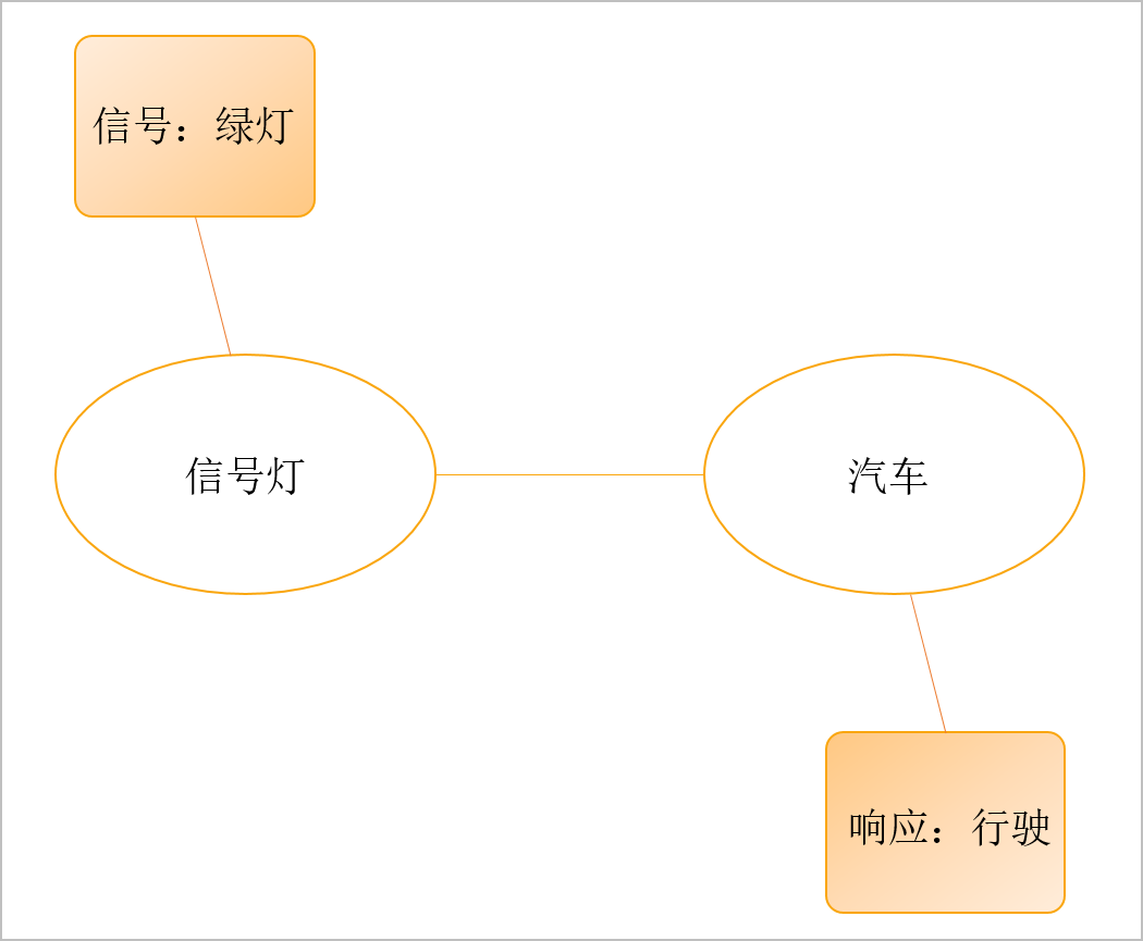 举个例子,在一个十字路口,信号灯变成了绿色,对面的汽车看到后就启动了。信号灯就是发送信号的对象,绿灯亮是它发送的信号 (signal),汽车是接收对象,汽车行驶是汽车对信号的响应,也叫槽 (slot)。