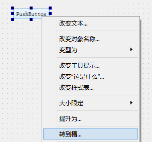 另外一种方式不需要使用 connect 函数,可以通过Qt Creator 界面来完成发送信号和槽函数的连接,比如我们右键点击一个按钮,然后选择“转到槽”: