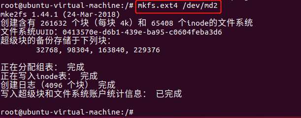 - 格式化,在/dev/md1上面创建一个ext4文件系统
