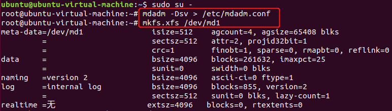 - 格式化,在/dev/md1上面创建一个xfs文件系统