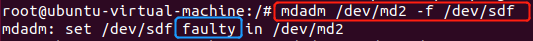 - 模拟其中一块硬盘损坏情况,假设硬盘/dev/sdf损坏