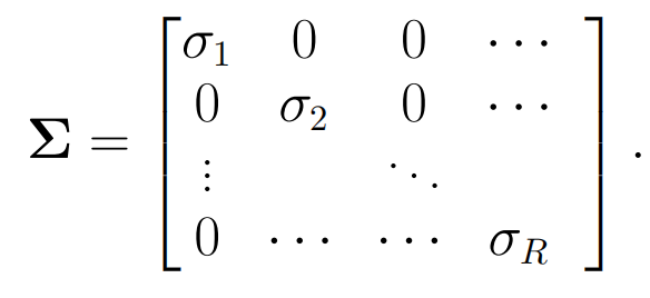 矩阵中对角线上的元素均为矩阵A的奇异值,并且有先前的推导我们知道,奇异值实际上是 和