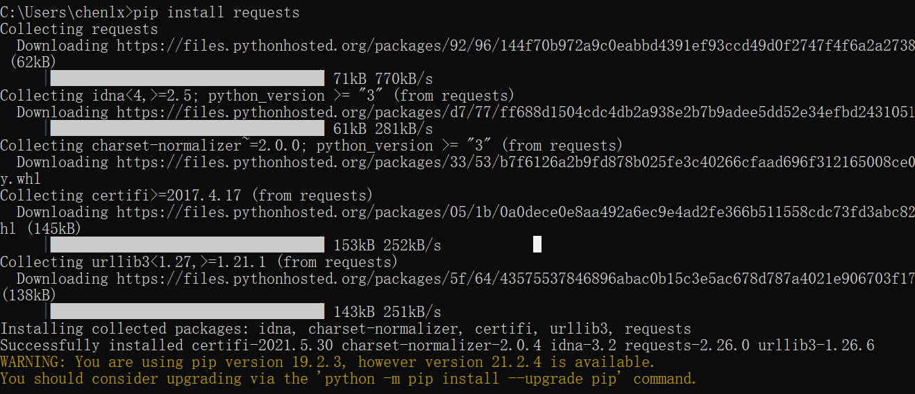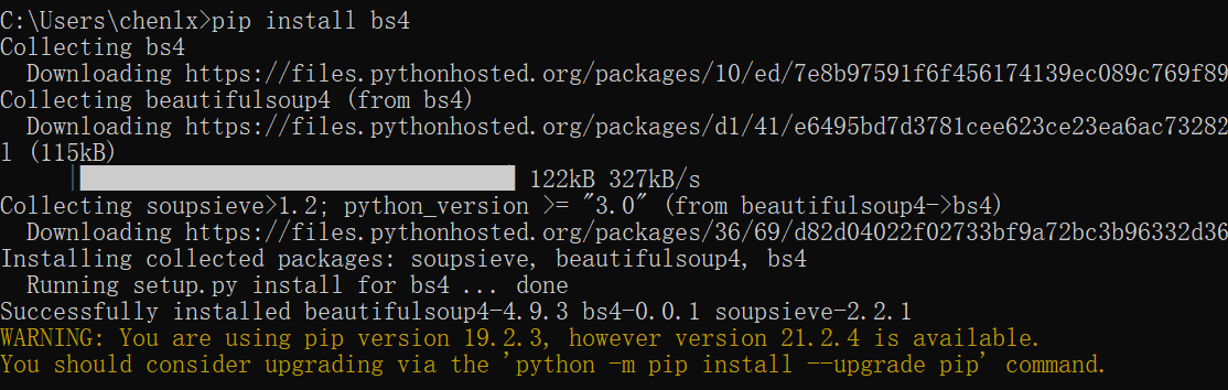 python笔记:requests,bs4模块安装进入cmd窗口:执行命令:pip install requests执行命令:pip install bs4 版权声明:本文为jywlpszx原创文章,遵循CC 4.0 BY-SA版权协议,转载请附上原文出处链接和本声明。原文链接:https://blog.csdn.net/jywlpszx/article/details/119700722