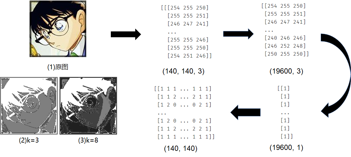 2、K=3建立Kmeans模型,实现图像数据聚类;