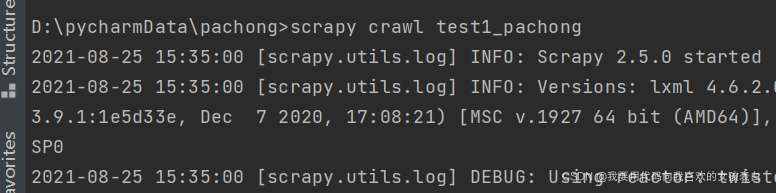 i = i + 1ok,我们来运行测试一下。在控制台输入(注意一定要在你之前用scrapy创建爬虫的目录下)