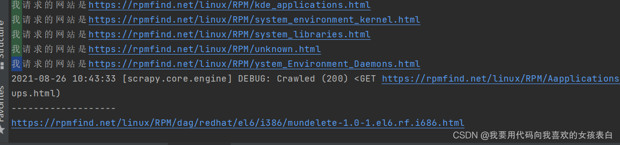 link='https://rpmfind.net/linux/RPM/'+link接下来调用创建回调函数去请求连接(在回调之前打印,这样就知道我进入了一个地址,在爬取它的子连接)