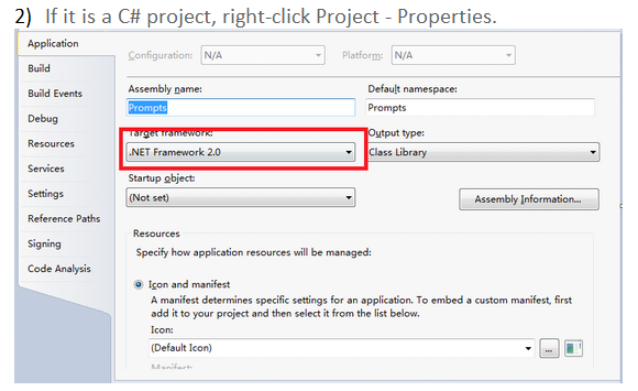 在VS创建一个新的C#类库项目,选择.NET 2.0框架!